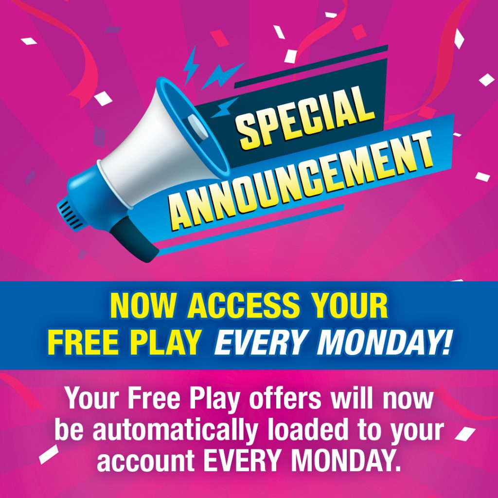 INTRODUCING MONEY MONDAYS Now access your Free Play every Monday. Moving forward, we’re making it Money Mondays for our members. Your Free Play offers will now be automatically loaded to your account every Monday. You no longer have to wait until a particular month’s start date. Regardless of how the calendar days align, you will […]