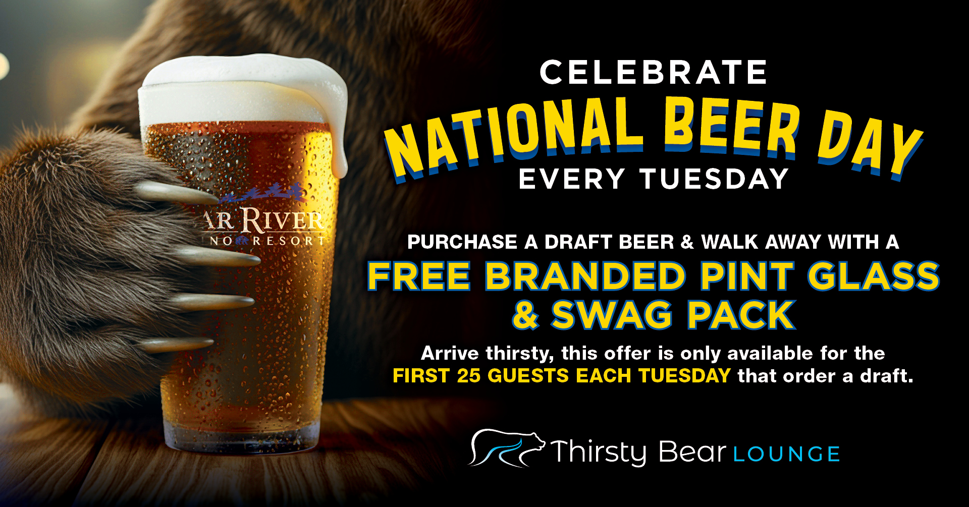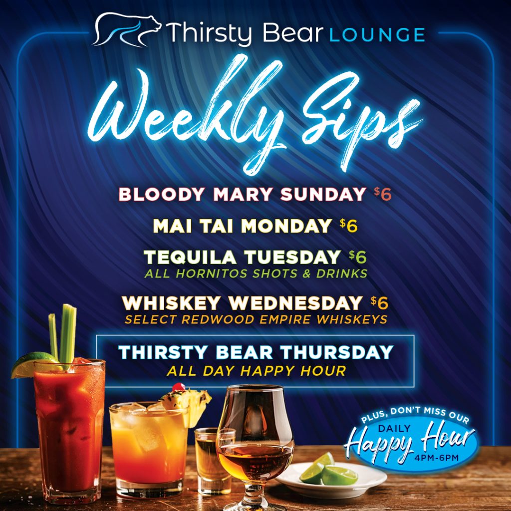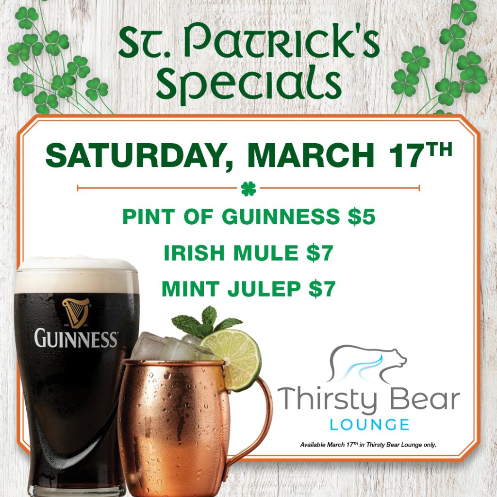 Thirsty Bear Lounge is a platform for local entertainment including weekly live music, DJ’s and even special events such as Trivia Night, Karaoke Nights and more. A local favorite for dancing and nightlife, its also the perfect place to catch your favorite team or game on the big screens while enjoying some incredible pub grub and our expansive craft beer selection.