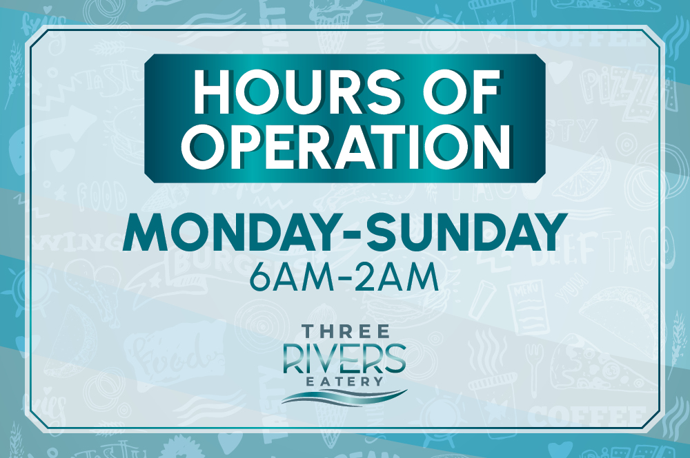 Choose from three mouthwatering outlets: Burgers, Pizza, Wings, Ice Cream & Coffee, and Mickey’s Taqueria. Grab a burger, slice of pizza, some tasty tacos, or satisfy your sweet tooth with ice cream and coffee. With options for every craving, Three Rivers Eatery ensures you can refuel and get back to the action in no time.